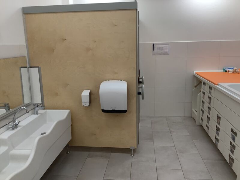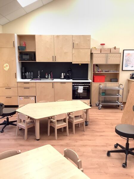 Zusätzlich fungiert die Orange Gruppe auch als Frühstücksraum für die Krippenkinder. Das Frühstück verläuft gleitend und gruppenübergreifend. Das Mittagessen der Krippenkinder findet gruppenintern im jeweiligen Gruppenraum statt.